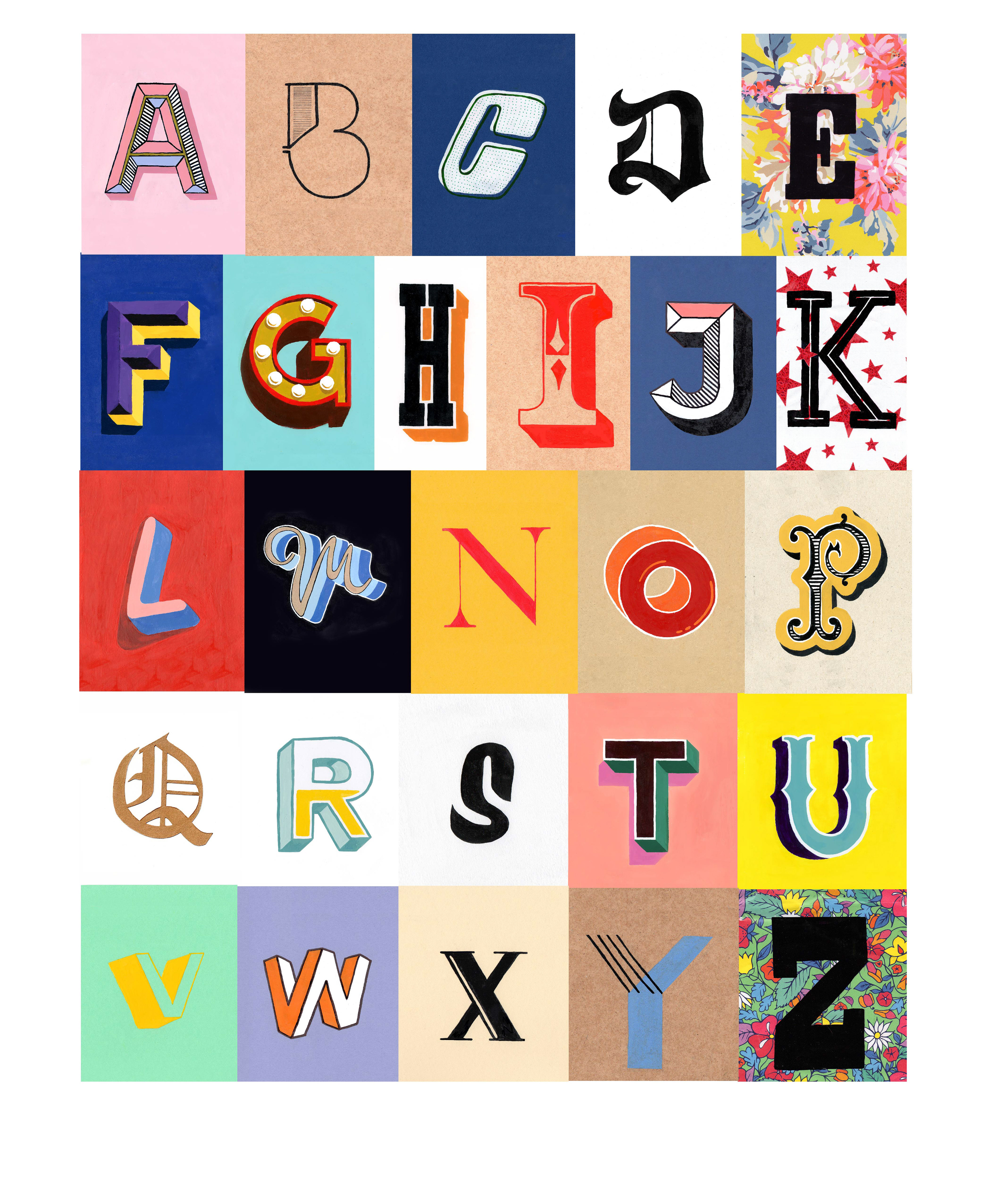 Hand painted letters A to Z